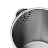 Pre jednoduchú údržbu je vykurovacie teleso skryté pod rovným nerezovým dnom. Stredový konektor uľahčuje jej umiestnenie na podstavec, a vďaka jednoduchému otváraniu veka je jej použitie pohodlné a ľahké.